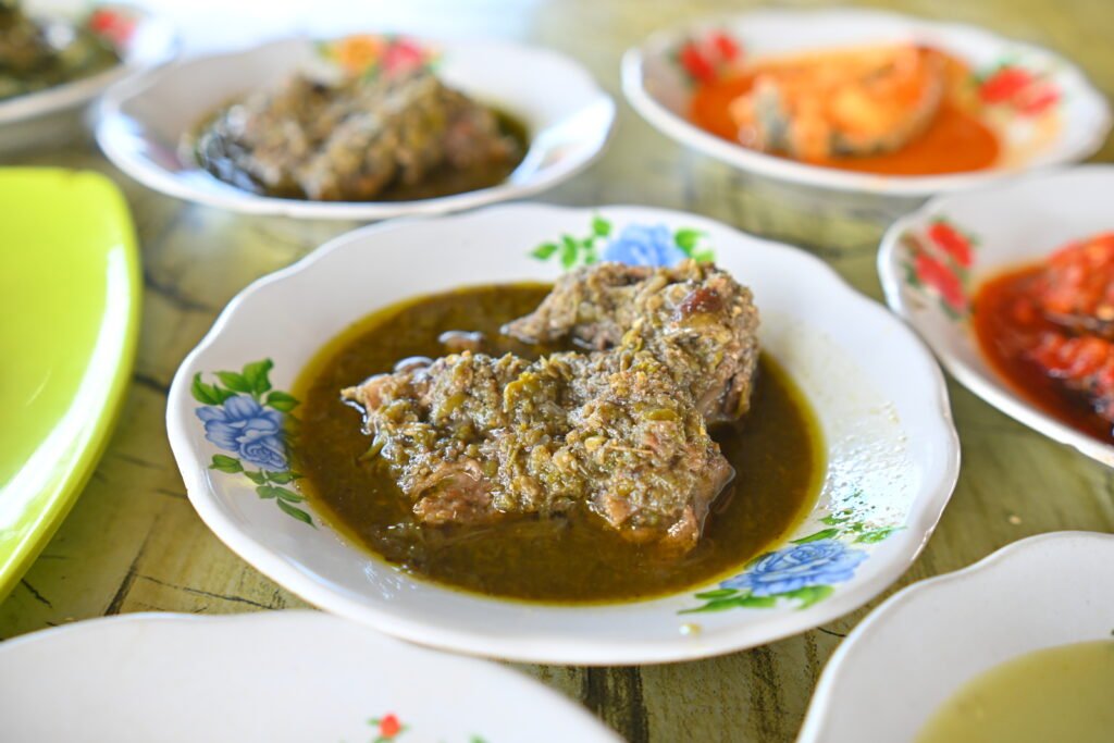 Hidangan khas Payakumbuh dan Agam ini menggunakan daging itik kampung yang dimasak dengan lado mudo, yakni cabai hijau muda yang dihaluskan bersama rempah-rempah. Rasa pedasnya berbeda β bukan membakar lidah, tapi memberikan sensasi segar dan wangi. Proses memasaknya dilakukan perlahan agar daging itik empuk, menyerap sempurna bumbu serai, daun jeruk, dan kunyit. Itiak lado mudo sering dihidangkan dalam acara keluarga besar atau perayaan adat, menjadi simbol kekayaan rasa dari dataran tinggi Minang yang sejuk dan subur.