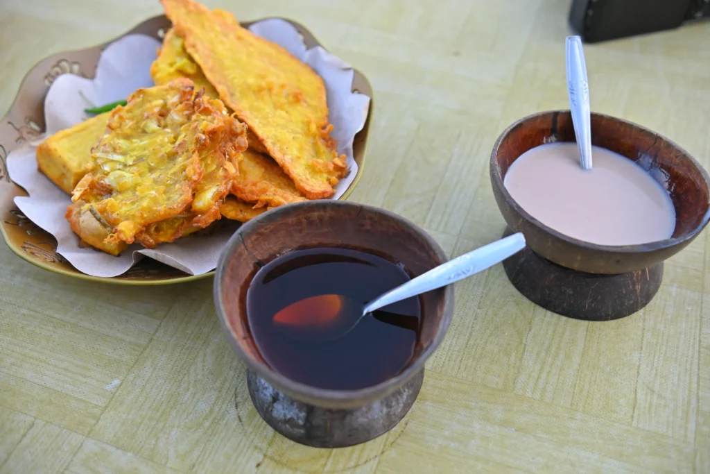 Sala Lauak adalah gorengan khas kota pesisir Pariaman. Adonannya dibuat dari tepung beras, ikan giling (biasanya ikan teri atau ikan kembung), bawang, dan rempah, lalu digoreng hingga kecokelatan. Bentuknya bulat kecil, renyah di luar dan lembut di dalam. Rasa gurih ikan laut berpadu sempurna dengan aroma bawang dan tepung beras, menjadikannya camilan favorit di pasar dan pantai. Sala Lauak sering disajikan bersama lontong atau dinikmati begitu saja dengan sambal lado.